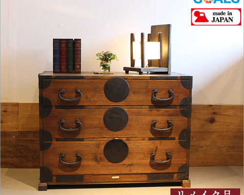 - 洋服タンス・押入れ収納 > チェスト・タンス > 古い木製のチェスト 引き出し3段 総桐箪笥 昭和レトロ タンス 古家具 古民家 古い木製の引き出し3段 チェスト 桐箪笥 タンス 収納 古家具 古民家