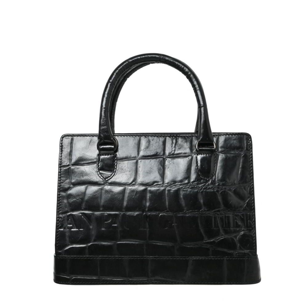 良品◎Jean Paul Gaultier 2way ハンドバッグ 黒 ブラック Jean-Paul GAULTIER 2way クロコ型押し レザー ショルダー バッグ