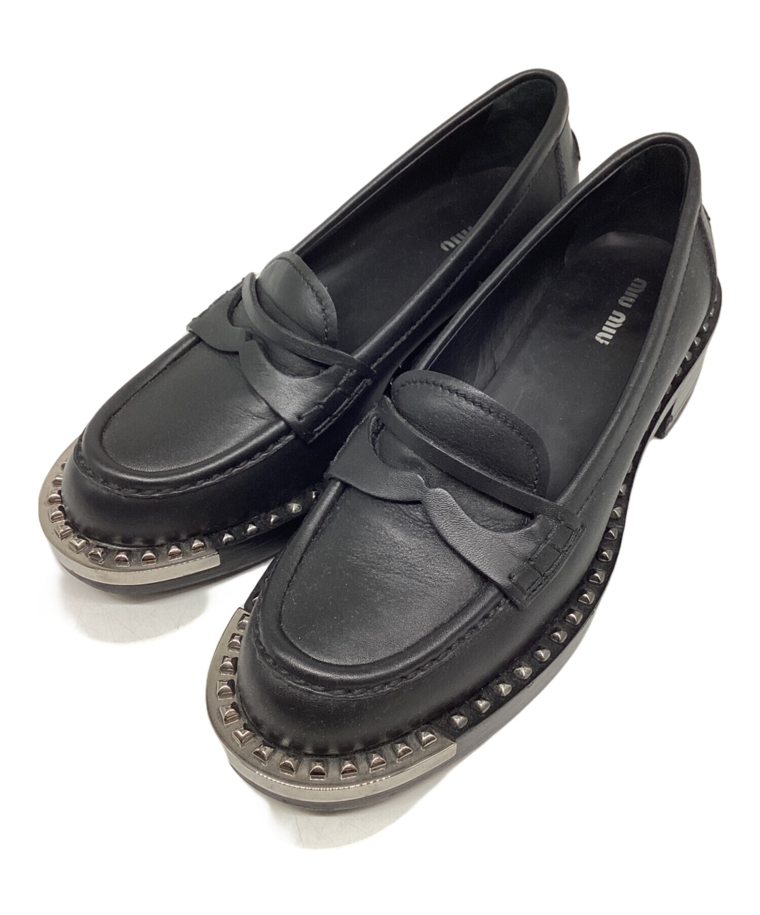 | 商品の特徴 | YM ファッション Miu Miu ブラック ローファー スタッズ。Miu Miu ブラック ローファー スタッズ。MIU MIU ミュウミュウ レザー Penny Loafers ペニー ローファー。2023年 梅田阪急百貨店にて購入致しました。。。楽天市場】MIUMIU ミュウミュウ ローファー 5D866D 011 レディース。数回履いています。ご質問、写真の追加、値下げ等お気軽にお声がけ下さい。新品未使用⭐️Demonia デモニア 厚底ブーツ 黒 23.5cm US7 | ||